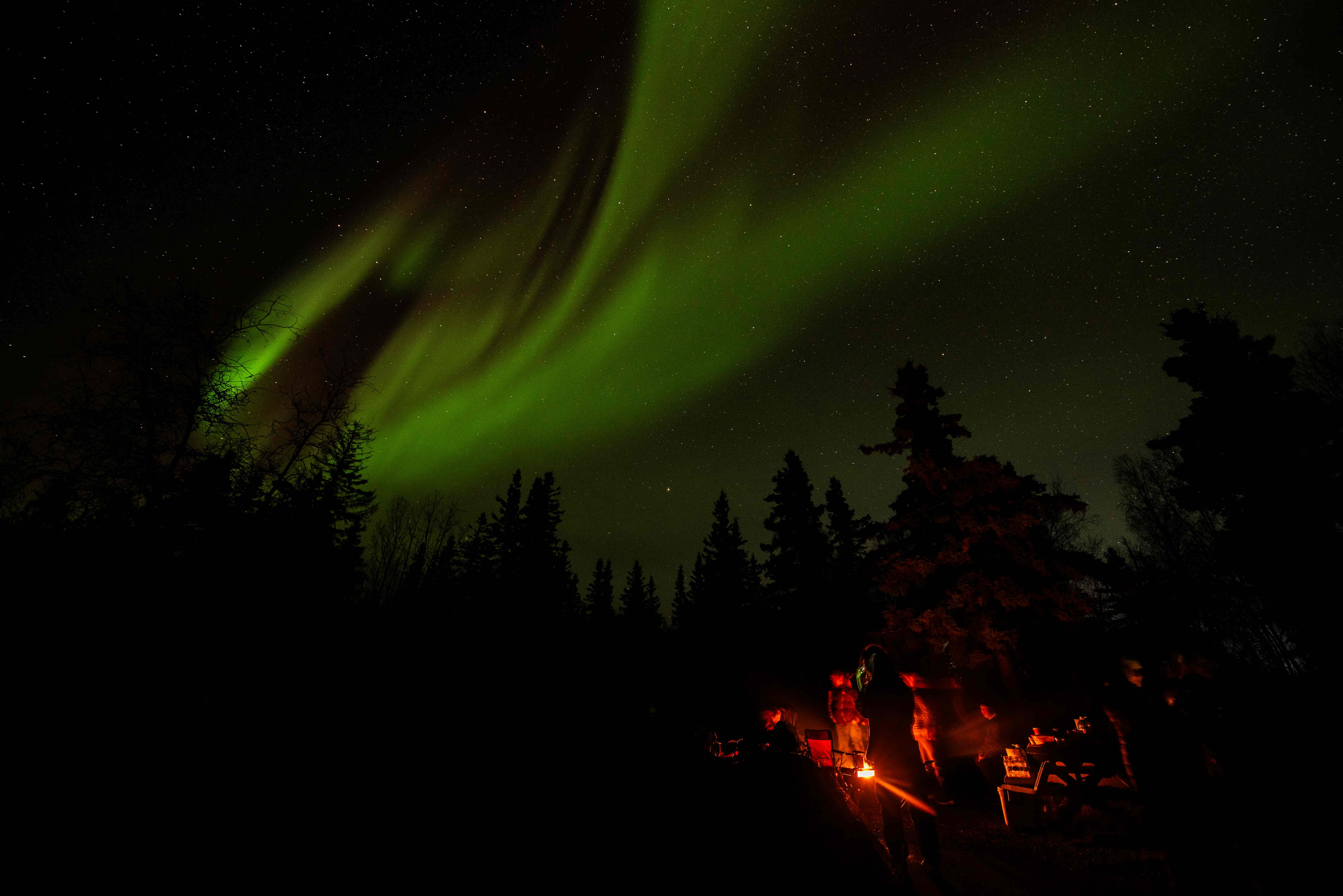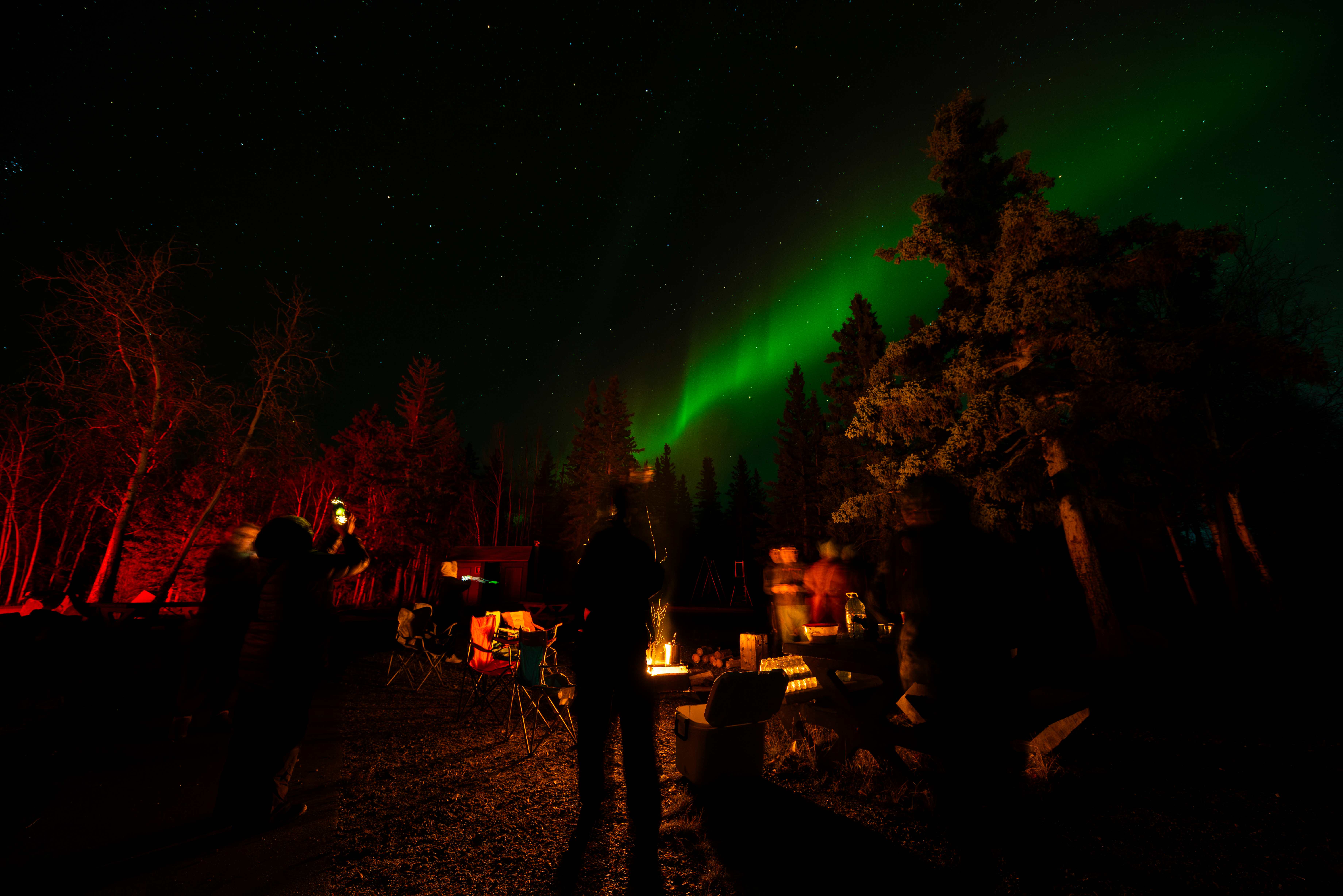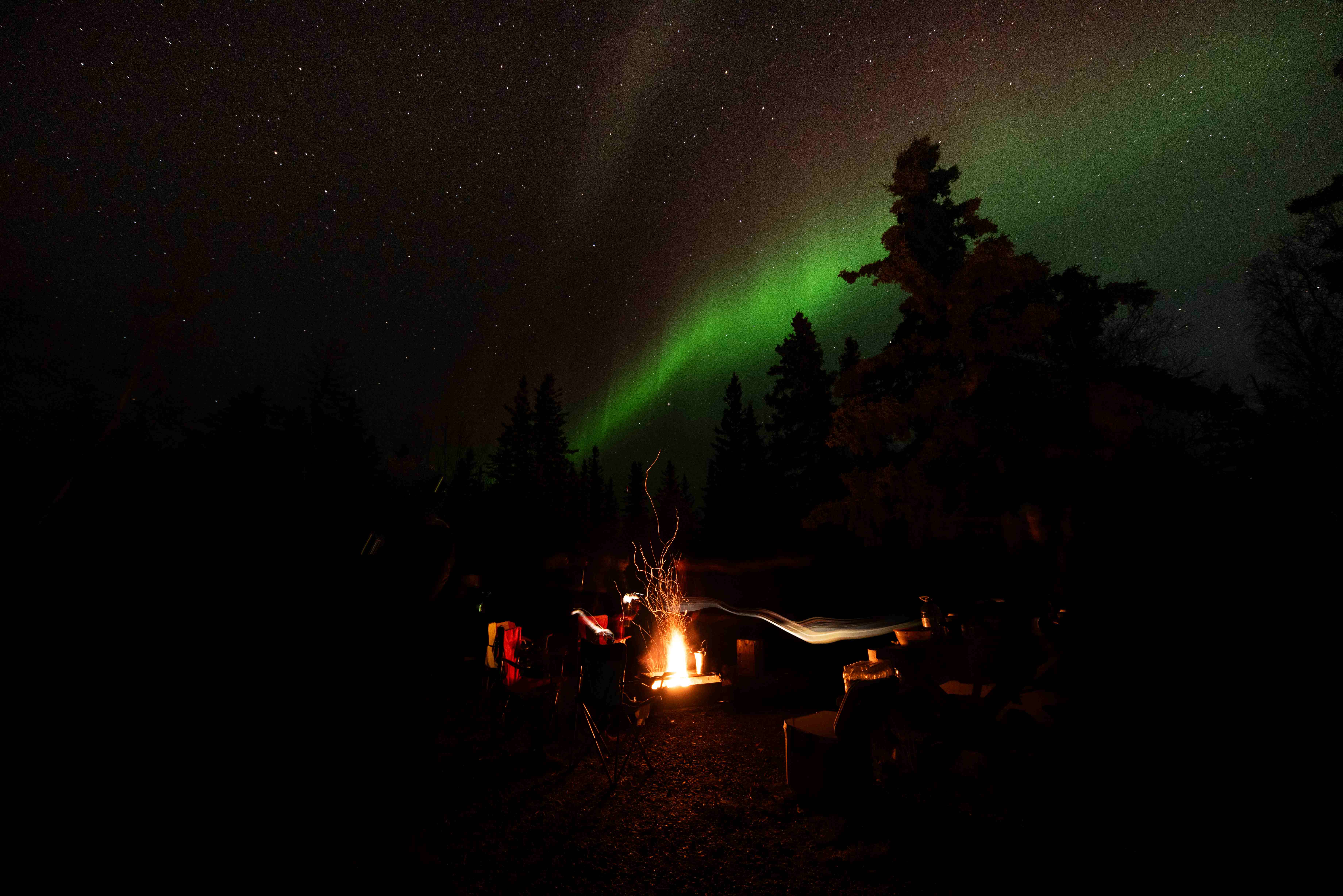As dusk falls and the vast northern sky deepens into inky twilight, you’ll find yourself cozied up by a crackling fire, wrapped in warm blankets, the scent of spruce smoke lingering in the crisp air. Surrounded by wilderness and silence, far from the distractions of city lights, you’re in the perfect place to witness one of the world’s most awe-inspiring natural phenomena — the Northern Lights.
