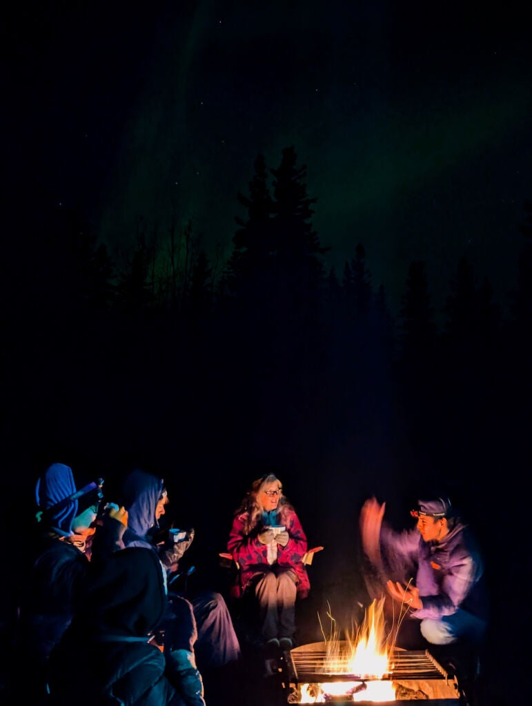 As the fire glows and the lights ripple overhead, local Indigenous storytellers share legends passed down through generations — stories of the land, the spirits of the sky, and the deep cultural meaning behind the Northern Lights. These are not just performances, but heartfelt connections to the land, history, and identity of the people who have called this region home for thousands of years.
